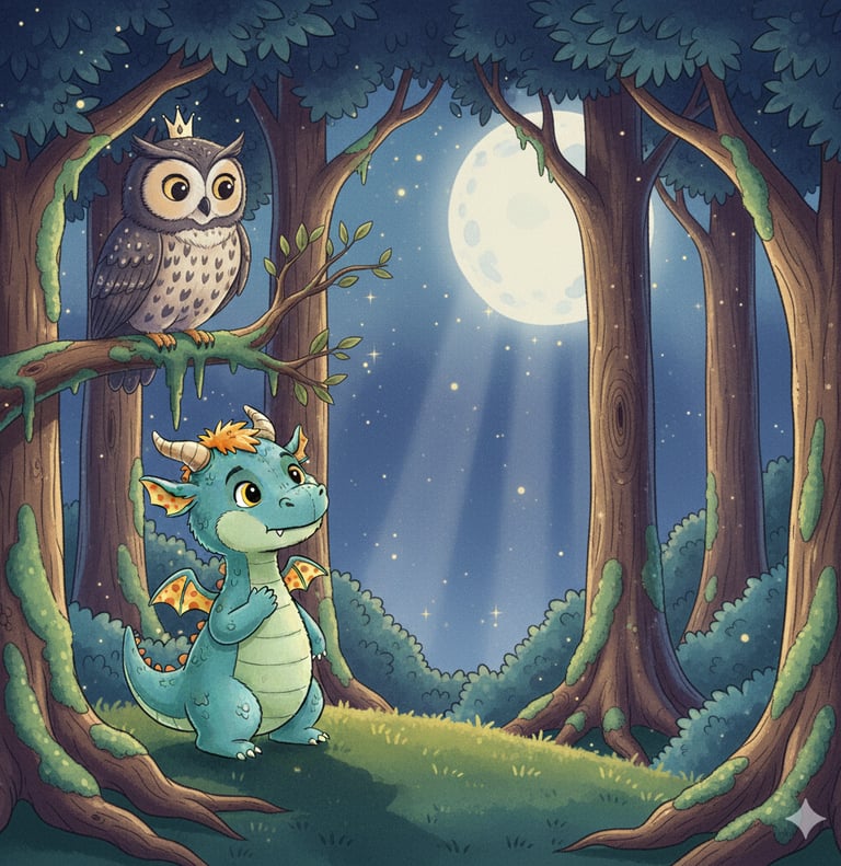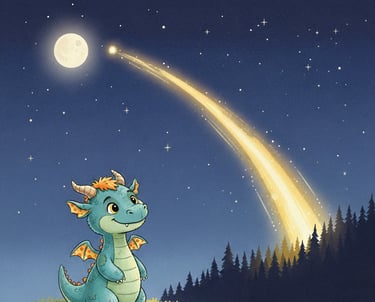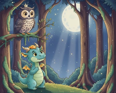 In a quiet valley wrapped between silver mountains and emerald woods lived Ferdinand, a young dragon with wings that shimmered like morning dew. He was brave in heart but clumsy in everything else. His tail often swept away flowers he meant to smell, and when he tried to land gracefully, whole trees shivered in protest. Yet, everyone in the valley loved him — for no creature was kinder, gentler, or more willing to help than Ferdinand.