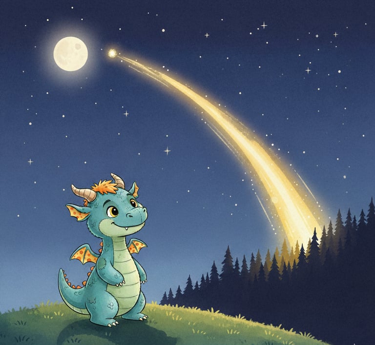 One starry night, as Ferdinand gazed at the sky from his favorite hill, something unusual happened. A streak of golden light cut through the heavens — brighter, warmer, and slower than any shooting star. It didn’t vanish. It fell. But it did not crash or burn. It glided gently, disappearing into the heart of the Whispering Forest, leaving a trail that shimmered like moonlight on water.